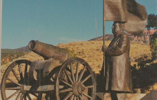 1996 Bronze Life-size monument includes two figures George A Smith, Jacob Huffines and a cannon, Heritage Park, Parowan, UT....